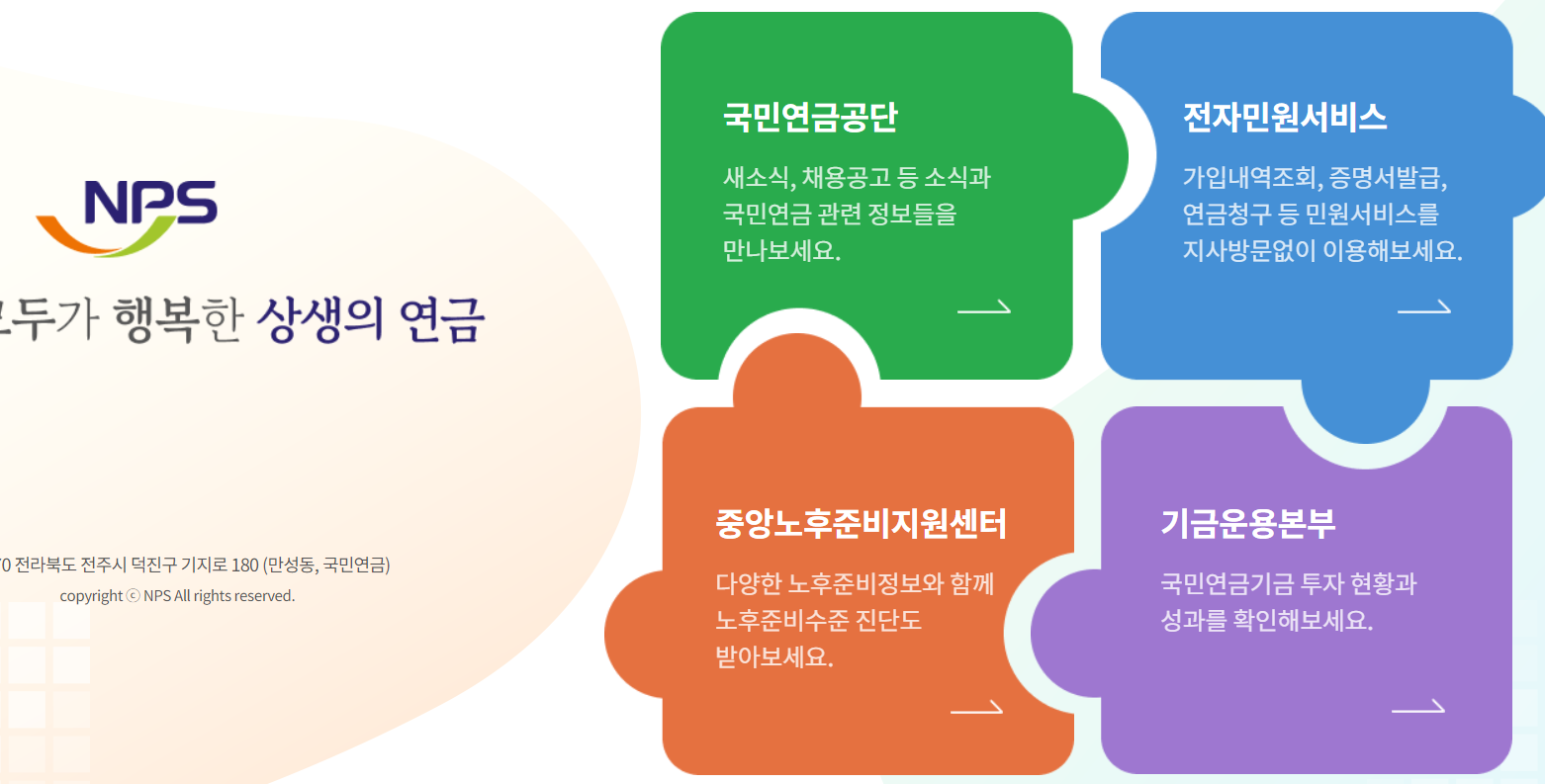 검색창에 '국민연금공단'을 입력하시면 홈페이지가 나타납니다. 홈페이지에 접속하신 후 전자민원서비스에 접속합니다.