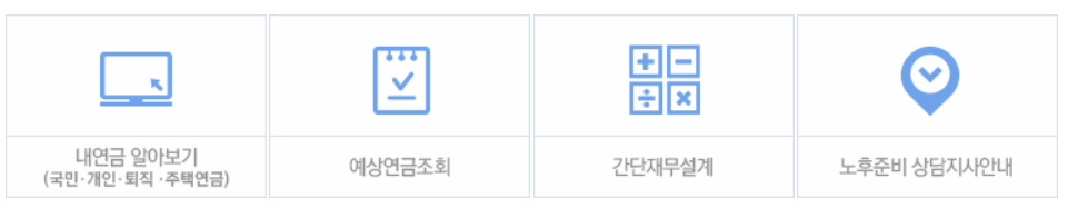 아래로 조금 더 내리면 예상 수령액을 간단하게 계산할 수 있는 계산기 버튼이 있습니다. 또한 개인연금과 주택연금 등을 확인할 수 있는 버튼도 있으니 활용하시기 바랍니다.