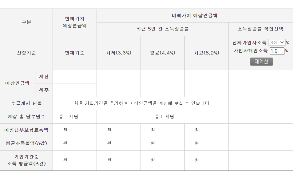 6. 예상연금액을 확인