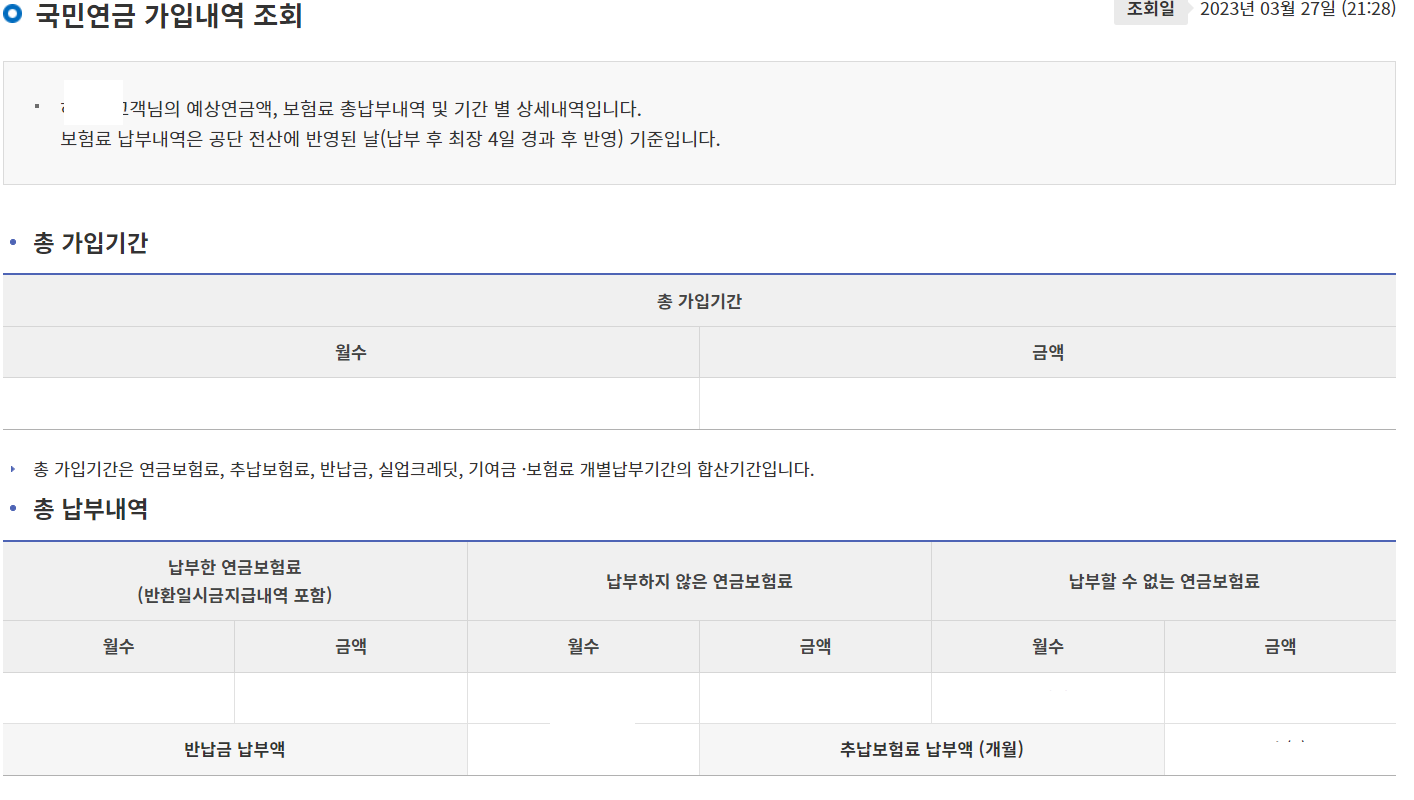 4. 총가입기간과 총납부내역 등을 조회